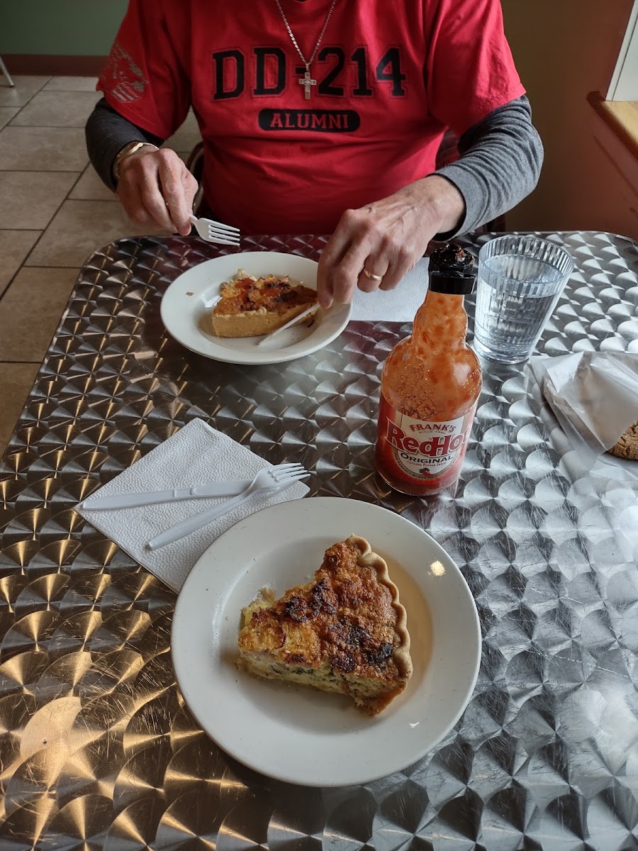 Really good slice of quiche - fresh from the oven. That plus a cup of coffee was a $6.11 breakfast - great value. Out of the way spot - a bit barren and cold seating but adequate.